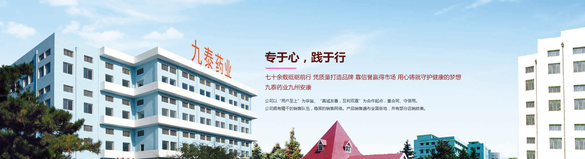 錦州九泰藥業(yè)有限責(zé)任公司是具有七十多年生產(chǎn)歷史的綜合性制藥企業(yè)。前身錦州制藥一廠始建于1951年,1998年改制為錦州九泰藥業(yè)有限責(zé)任公司。近年來各項經(jīng)濟指標(biāo)一直位于全國醫(yī)藥生產(chǎn)企業(yè)百強之列,是遼寧省重點制藥企業(yè)之一。曾先后榮獲:省級先進企業(yè)、省級文明單位、省級科技先導(dǎo)型企業(yè)省級用戶滿意企業(yè)等榮譽稱號...